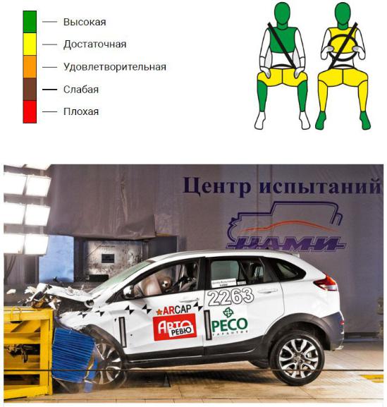 В России было проведено несколько краш-тестов по методике Euro NCAP. Основная оценка автомобиля – это сумма баллов на защиту передних пристёгнутых пассажиров. Так как были проведены только фронтальные краш-тесты, то автомобиль мог получить максимум 16 баллов и четыре звезды. "Лада XRAY Cross", базирующаяся на той же платформе B0, что и "Renault Logan", защищает пристегнутых седоков лучше седана. Подушки безопасности JSS надежно уберегают головы и шеи от травм, а хорошей защите груди способствуют ремни с пиротехническими преднатяжителями и ограничителями усилия. Оценки снижены только за потенци-