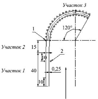 Рис. 24. Испытания "поворот" с радиусом 30 м: 1 – вертикальные ограничители коридора движения; 2 – датчики скорости