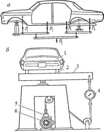 На рис. 28 а представлена схема нагружения кузова (рамы) легкового автомобиля при статических испытаниях на изгиб.