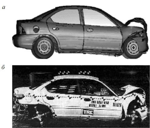 Рис. 35. Расчетная (а) и фактическая(б) деформации автомобиля