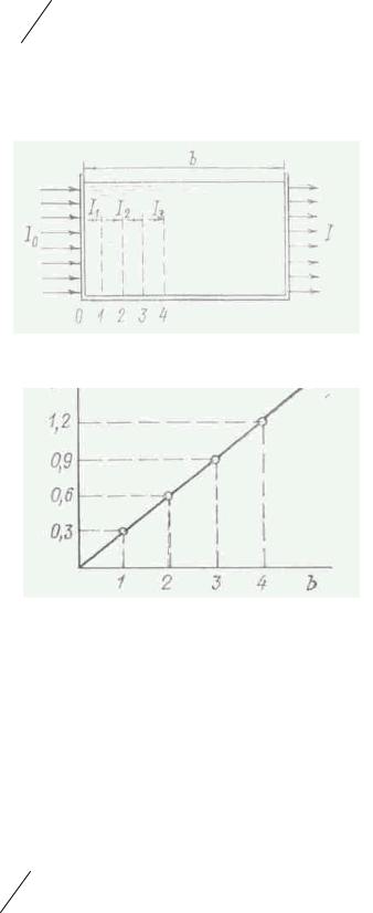 Рис. 4.4. К выводу уравнения (4.9) зависимость интенсивности окраски раствора от концентрации красителя и толщины слоя