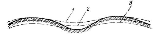 Рис. 5.7. Три способа исправления рельефа: 1– насыпи; 2 – насыпи-выемки; 3 – выемки