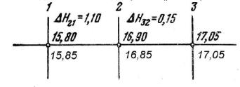 Нпр1=Н1+ hн2 =15,80 + 0,05 = 15,85 м; Нпр2= Н2 – hн1 =16,90 – |