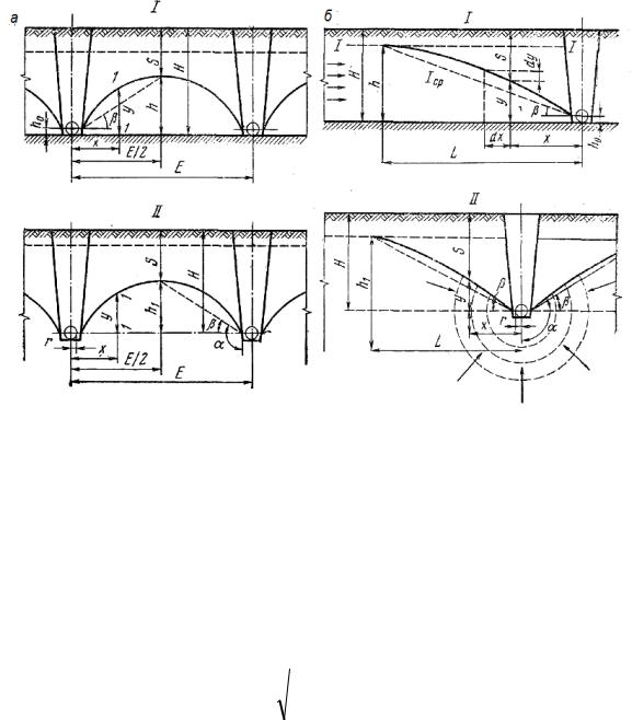 Рис. 6.8. Расчетные схемы глубинного дренажа: |
