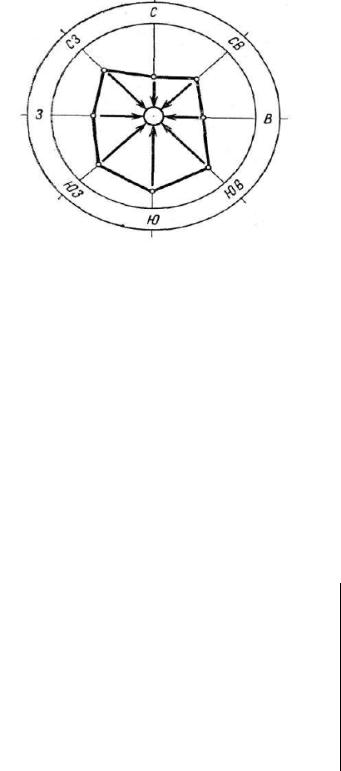 часовой стрелке и сложить проценты повторяемости ветра по скоро- |