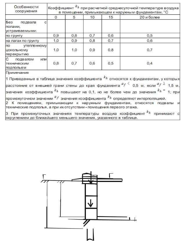 kh – коэффициент, принимаемый при расчетной среднесу точной температуре воздуха в помещении, примыкающем к наружным фундаментам, °С, по табл. 30.
