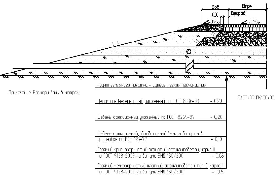 Рисунок Ж.3 Поперечный профиль конструкции земляного полотна и нежесткой дорожной одежды