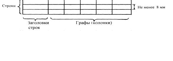 Название таблицы, при переносе ее части, помещают только над первой частью таблицы, в других частях головку таблицы следует заменять соответственно номерами граф и строк. При этом нумеруют арабскими цифрами графы и (или) строки первой части таблицы, слева над другими частями таблицы с прописной буквы следует писать слова «Продолжение таблицы» или «Окончание таблицы» с указанием номера таблицы. Высота строк таблицы должна быть не менее 8 мм (рисунок 12).