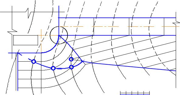 Рис. 28. Построение подошвы насыпи конического откоса |