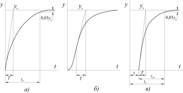 Время переходного процесса (время регулирования) tр на практике принимают равным времени, при котором регулируемая величина у достигает 0,95 от установившегося значения у0.