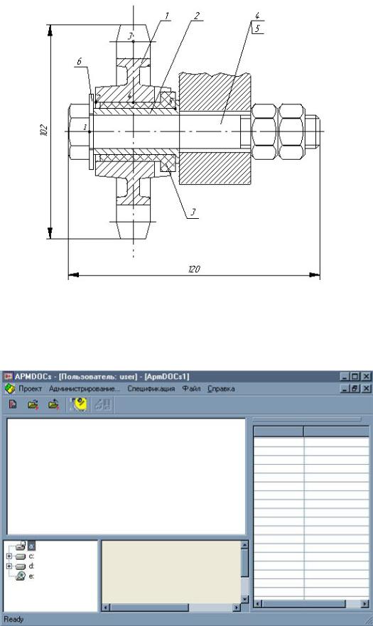 35. Из базы данных стандартных элементов вставить в чертёж первую гайку. Рисовать Блок Вставить из базы данных (