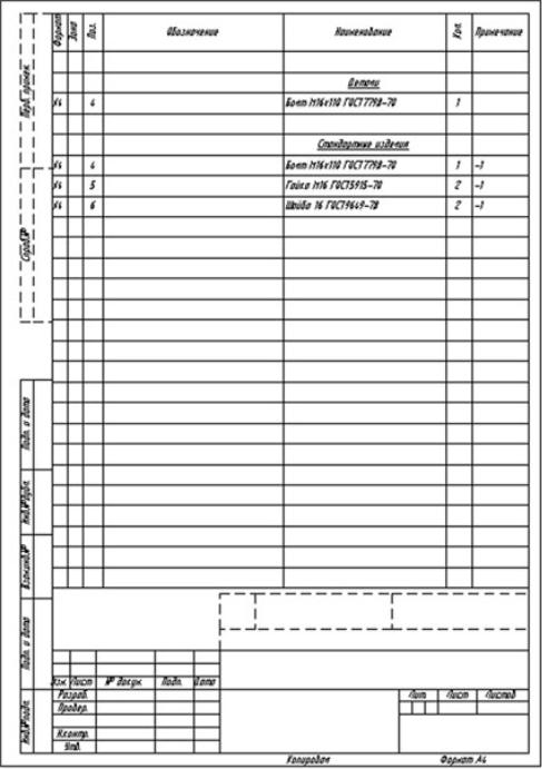 Примечание. В созданной спецификации указаны не все нужные стандартные изделия или детали, и могут содержаться лишние записи. Значит, были допущены ошибки при описании некоторых объектов в диалоговом окне «Выноска». Чтобы исправить и создать новые строчки в спецификации, необходимо ее модифицировать.