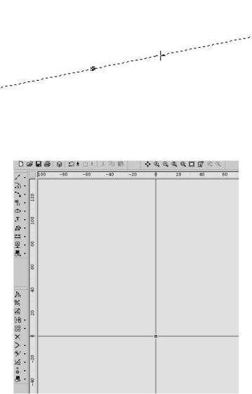 2.Построить вторую вспомогательную линию перпендикулярно первой. Для этого достаточно сделать щелчок левой кнопкой мыши в любом месте окна и, нажав и удерживая клавишу «Shift», перемещением указателя добиться вертикального положения строящейся линии. Щелчком левой кнопкой мыши завершить построение линии.