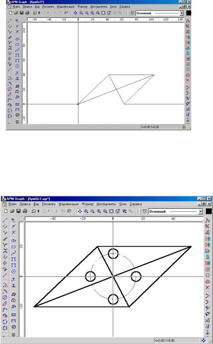 Если относительно точки пересечения диагоналей параллелограмма задано положение четырех окружностей, то целесообразно перенести начальную точку X=0; Y=0 в точку пересечения диагона-