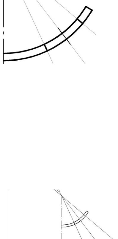 ). Навести указатель мыши на одну из крайних точек дуг (вид спереди рис. 24, а) и в момент появления синего маркера в точке сделать щелчок ЛКМ. Немного сместить курсор (появляется штриховая линия). Нажать клавишу «Shift» (при этом штриховая линия займет вертикальное положение) и сделать щелчок ЛКМ. В результате будет построена вертикальная вспомогательная линия. Построить вторую вспомогательную линию (см. рис. 24, а).