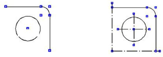 Примечание. Если появилось диалоговое окно, в котором сообщается, что нельзя создать скругления с такими параметрами, то необходимо повторить попытку осуществления данной операции. Нужно более чётко указать с помощью курсора мыши две линии и центр скругления.