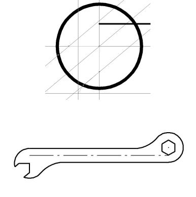 ). Создать ломаную линию, определяющую паз ключа под гайку, используя вспомогательные линии и точки их пересечения с окружностью (рис. 49). После завершения создания последнего звена ломаной (на рис. 49 курсор перемещен ниже окружности) завершить выполнение команды нажатием клавиши «Enter».