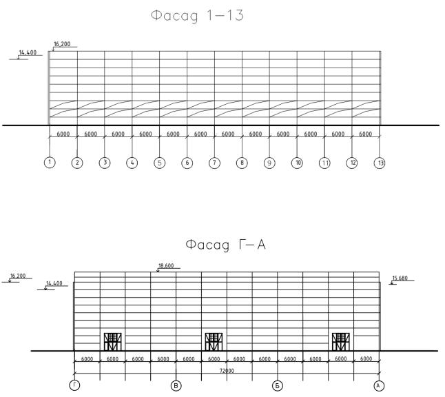 -б –шаг крайних колонн 6 м, средних колонн 12 м, шаг стропильных конструкций 6 м;