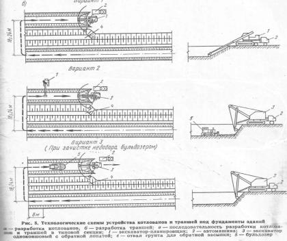 Рисунок 5.1 – Технологические схемы устройства траншей под фундаменты