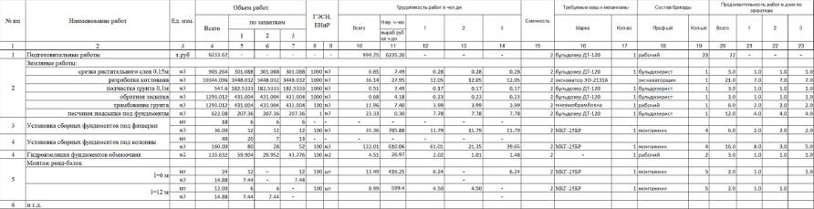 Таблица 6.4 Ведомость трудоемкости работ и потребности в машинах и механизмах