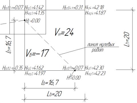 Рис. П.1.1. Фрагмент определения отметок плана земляных масс