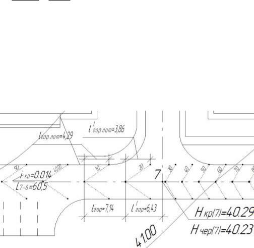 - определяем расстояние по лотку проезжей части по формуле lгор.лот iкр(7 6) 0,0140,06 4,29 м;