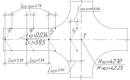 руемая отметка, в переломной точке или на перекрестке дорог от которой начинаем определять расстояние, кратна 0,20 ( Н кр(1) 42,40