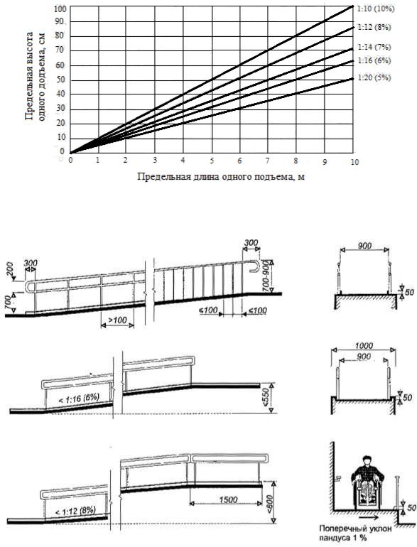 Пандусы (основные схемы, параметры, ограждения)