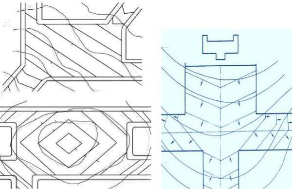 перечных уклонов: от лотка 30 0/00, далее 20 0/00, ближе к оси 15 0/00 и непосредственно у оси – 10-5 0/00, продольные уклоны площадей