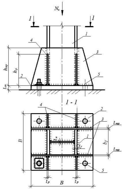 1 – стержень колонны; 2 – опорная плита; 3 – траверсы;