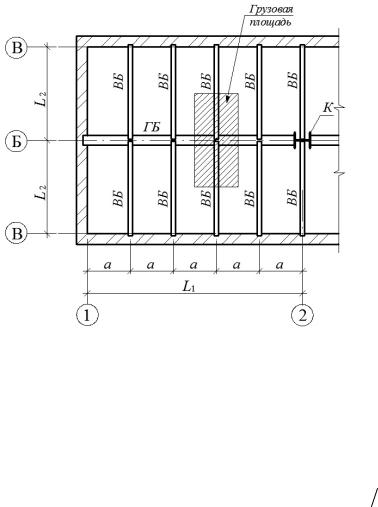 Второстепенные балки передают нагрузку от вышележащих конструкций (их собственный вес и временную нагрузку) на главную балку в местах их сопряжения. Схема для определения грузовой площади на один узел главной балки приведена на рис. 7.