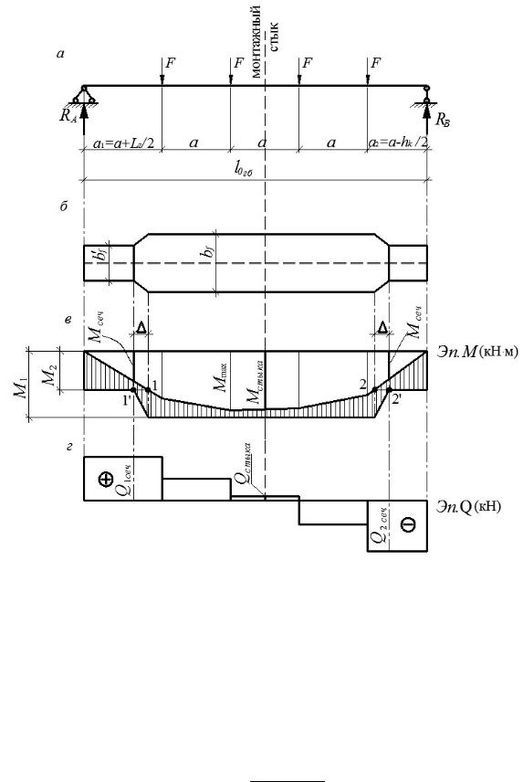 Точки 1 и 2 являются точками пересечения эпюры М с М2 – это места теоретического изменения ширины полки.