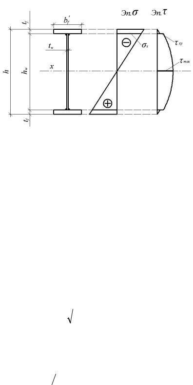 Если сечение полки не изменяется, то проверку прочности по касательным и приведенным напряжениям производят в опорной зоне с максимальной поперечной силой и средним изгибающим моментом в соответствующей зоне.