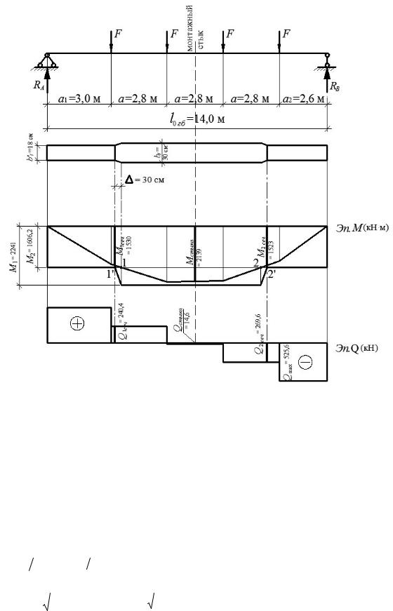 значением изгибающего момента Mсеч =153 000 кН·см и соответствующей поперечной силе Qсеч = 240,4 кН, на уровне поясных сварных угловых швов.