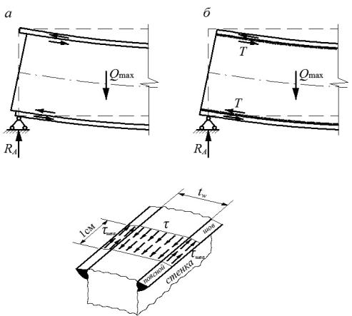 нений ведется на силу сдвига полки относительно стенки (рис.13, б).