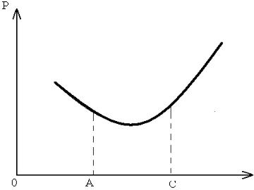 – наконец нач нается резкий рост кривой. Мощности перегружены, каждая дополн тельная единица выпущенной продукции да-