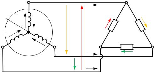 Рис. 3.5. Схема замещения трёхфазной электрической цепи при соединении фаз приёмника по схеме треугольник
