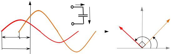 Представив синусоидальные ток и напряжение ёмкостного эле- |