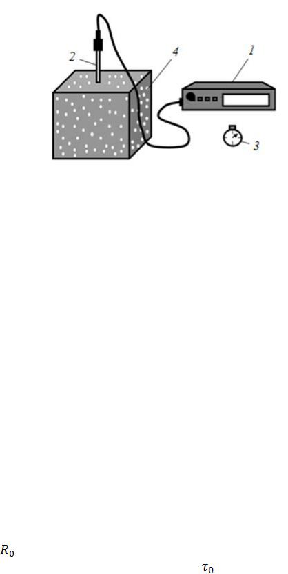 Рис. 9. Измеритель теплопроводности ИТ-1: 1 – пульт управления и регистрации показаний; 2 – цилиндрический зонд; 3 – секундомер; 4 – образец