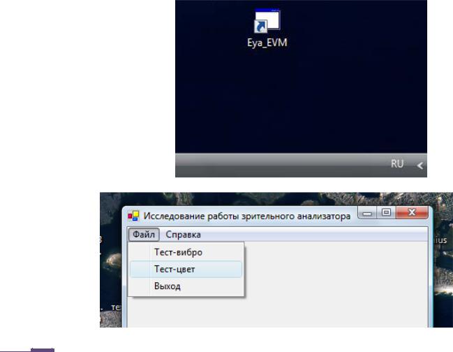 1. Осуществить запуск программы. Нажатием левой кнопки «мыши» на опции «Тест-цвет» меню «Файл» выбрать тест на цветовую чувствительность