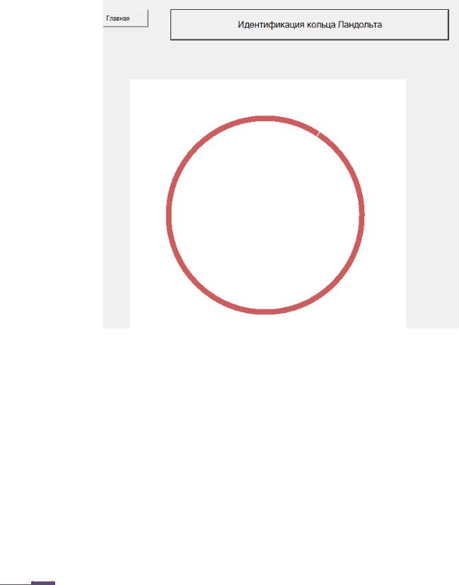 На экране ВДТ рисуется изображение кольца с разрезом. При наблюдении разреза необходимо щелкнуть левой кнопкой «мыши» на кнопке «Идентификация кольца Ландольта», расположенной вверху над изображением кольца.