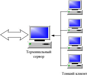«Бедные» клиенты не одинаково бедны. Примером «бедного» клиента служит давно известный терминал. Microsoft предложил технологию Windows Terminal Server, в которой приложение Windows работает на центральном сервере и передает графический интерфейс пользовате- лю-клиенту.