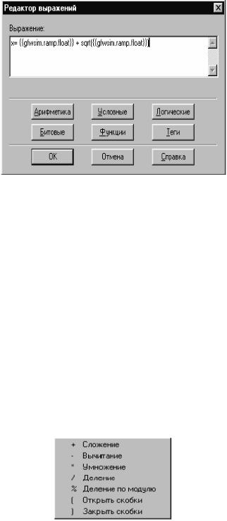 Для вызова меню символов арифметических операций следует нажать кнопку Арифметика диалоговой панели Редактор выражений.