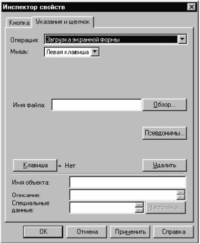 Рис. 47. Страница свойств Указание и щелчок – Загрузка экранной формы