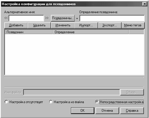 Рис. 48. Диалоговая панель Настройка конфигурации псевдонимов