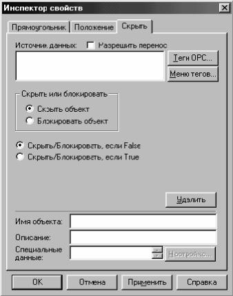 значением источника данных, при котором графический объект в режиме Исполнение будет исчезать с экрана, если связанное булево значение равно ИСТИНА (True) или ЛОЖЬ (False). Если переключатель Скрыть