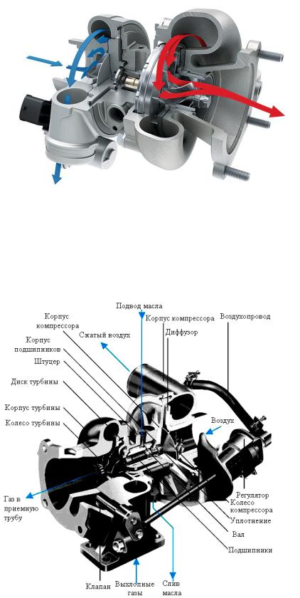 Рис. 4.2. Движение потока воздуха и отработавших газов в компрессоре и турбине