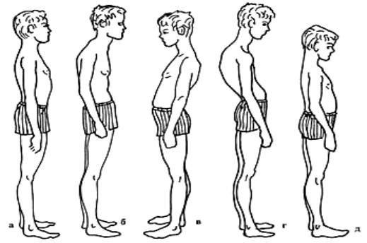 Рис.1. Виды осанки: а − нормальная; б − сутуловатая;