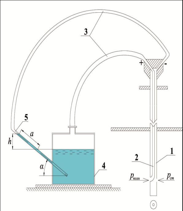 со спиртовым раствором; 5 – наклонная стеклянная трубка
