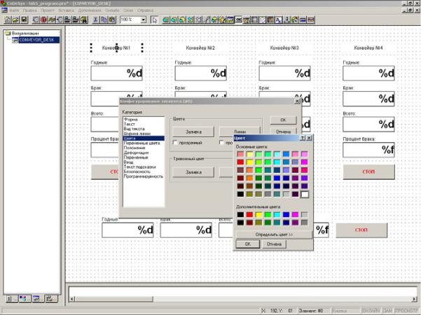 Ссунке 39, примерно так же выглядят и разрабатываются приложения визуализации для реальных промышленных АСУТП.